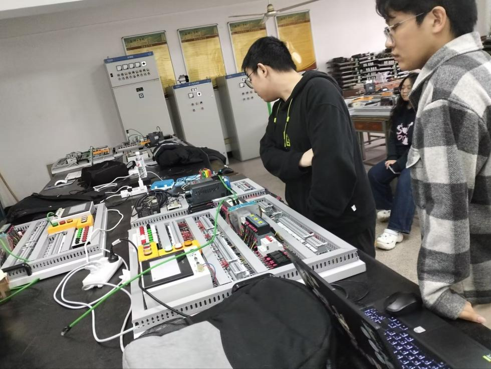 理论讲解与成果验收后,同学们还开展了简单的信捷变频器实操练习,将课堂所学直接应用于设备操作,进一步强化动手能力。