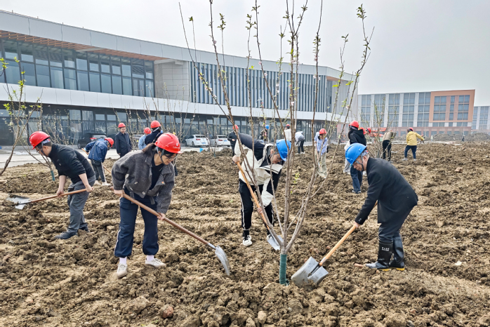 活动现场,师生党员与建设者们分工协作,挥锹铲土、扶苗培土、围堰浇水,合力栽下了一株株象征着希望与成长的桃树苗。大家干劲十足,默契配合,新栽的树苗在阳光下昂然挺立,为初春的新校区增添了一抹动人的新绿与生机。这片“桃李园”不仅寓意着“桃李满天下”的教育硕果,也承载着师生们对新校区美好未来的殷切期盼。